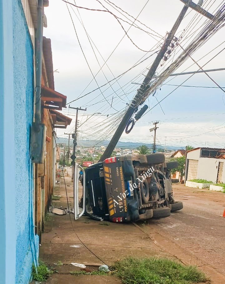 Viatura da PRF tomba após perseguição a carro suspeito em Altamira (PA)