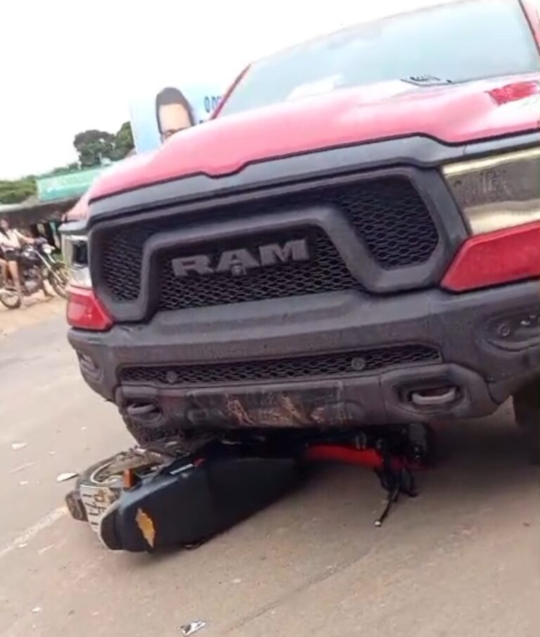 A colisão envolvendo uma caminhonete modelo Ram e uma motocicleta ocorreu por volta das 11h30 desta segunda-feira, 20 de abril, no cruzamento da Rua Benjamin Constant com a Avenida Ângelo Debiase, no centro da cidade de Uruará, no sudoeste do Pará.